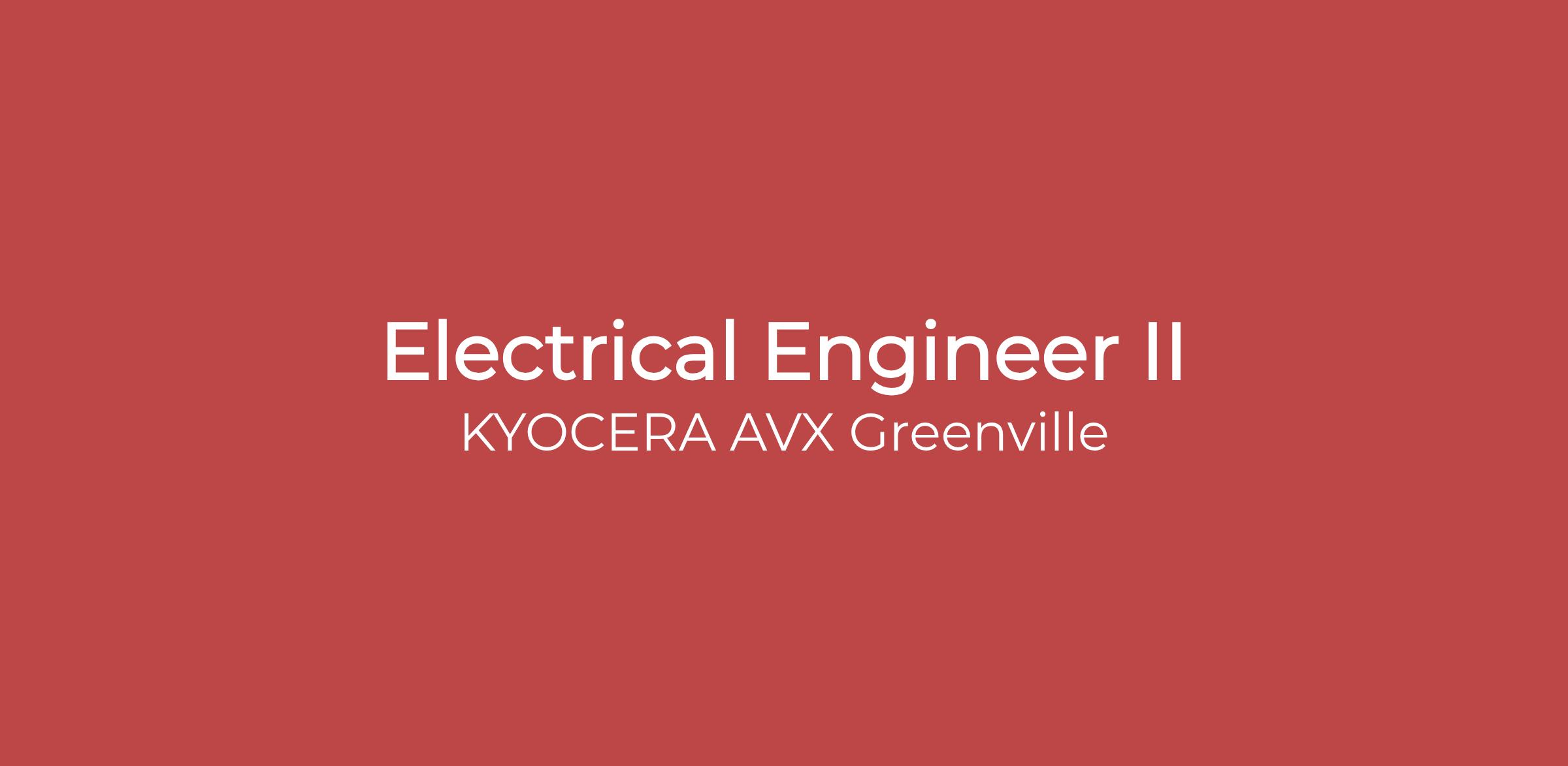 Kyocera-AVX is an Equal Opportunity Employer: All qualified applicants will receive consideration for employment without regard to race, color, religion, sex, national origin, disability, or status as a protected veteran.