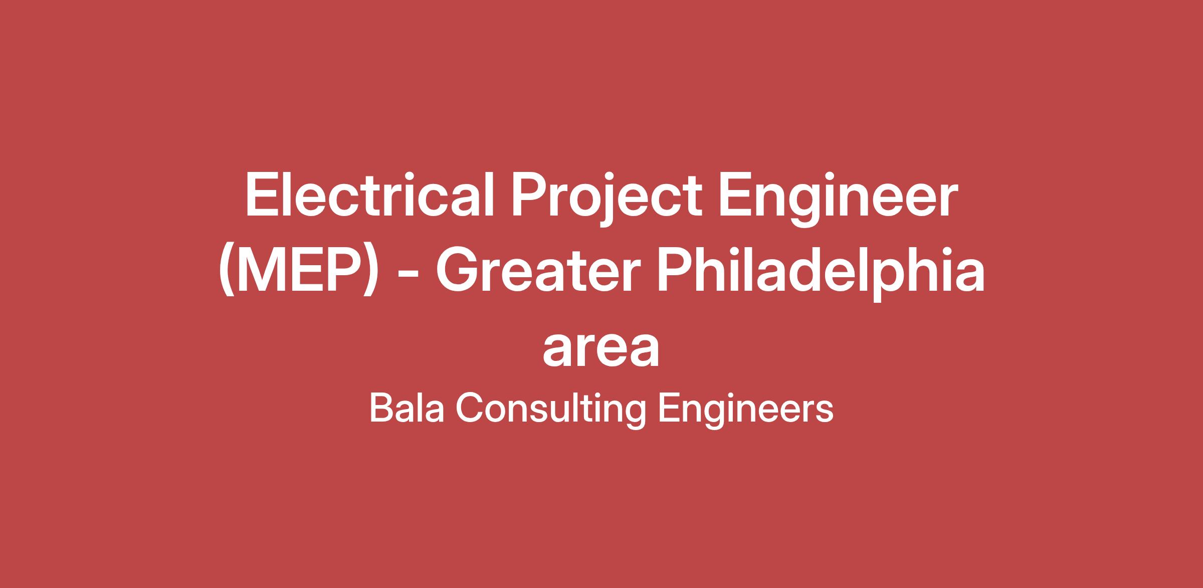 Bala is seeking an We are seeking an Electrical Project Engineer to sit in our Wayne, PA office supporting the function enterprise-wide.