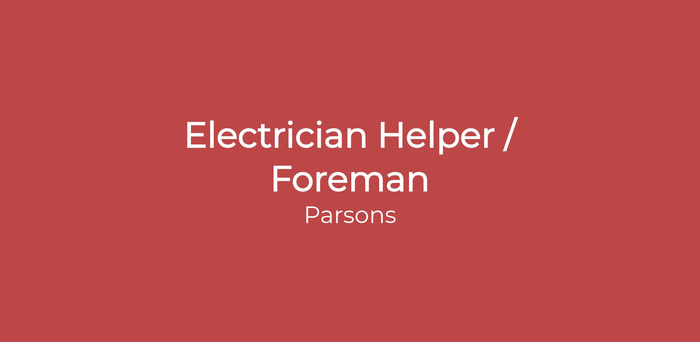 Parsons is looking for an amazingly talented Electrician Helper / Foreman to join our team in Herndon, VA! In this role you will support multiple clients through maintenance and installation of many different types of technologies along the roadside.