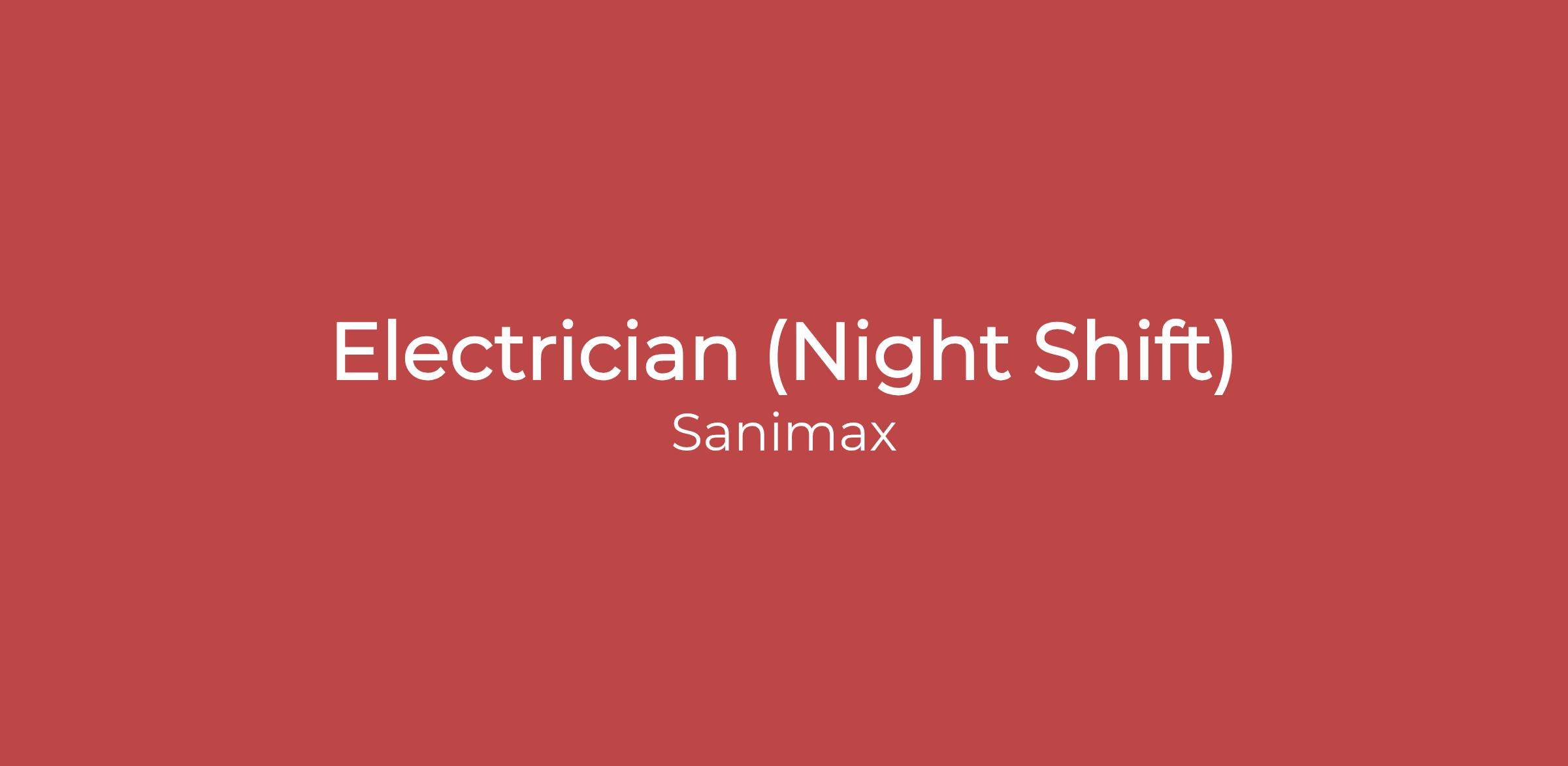 Sanimax is looking for a night shift Electrician. The schedule is 2/2/3 working from 6 pm to 6:20 am.