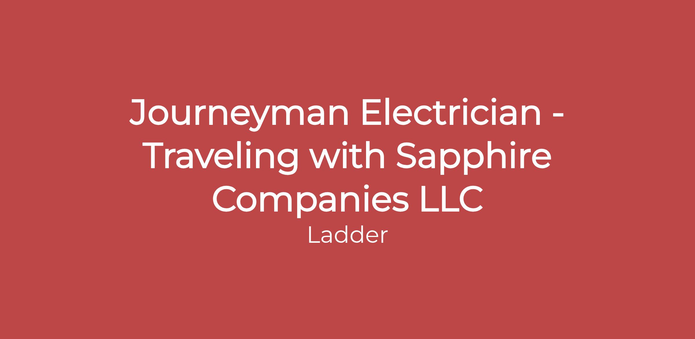 Apply On Ladder: https://app.meetladder.com/e/Sapphire-Companies-LLC-TCrS9BSXQj/Journeyman-Electrician-Traveling-USA-USA-XTJxAAJRqY