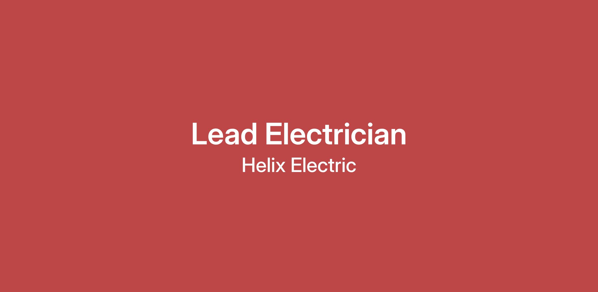 Helix Electric has need for a dynamic State Certified Lead Journeyman Electrician. The successful electrician will be part of a production driven team, performing electrical installations and troubleshooting.