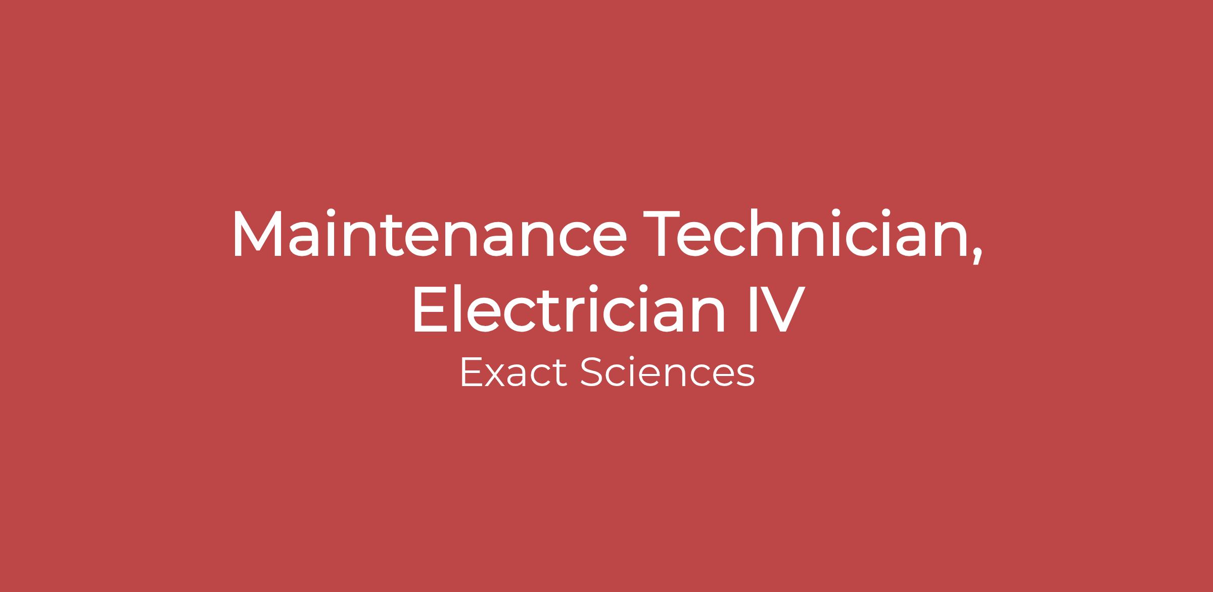 The Maintenance Technician, Electrician IV is responsible for operating, maintaining, troubleshooting, and repairing as well as adjusting electrical equipment, sensors, controls, wiring systems, and industrial processing systems used in production, laboratory, office and utility spaces located within office, Lab, R&D, and GMP manufacturing locations. Additionally, this position supports automation equipment like fill, cap, and labeling, conveying, and product finishing equipment and supports maintenance and performs troubleshooting as requested. This is a multi-skilled electrical maintenance position at Exact Sciences.
