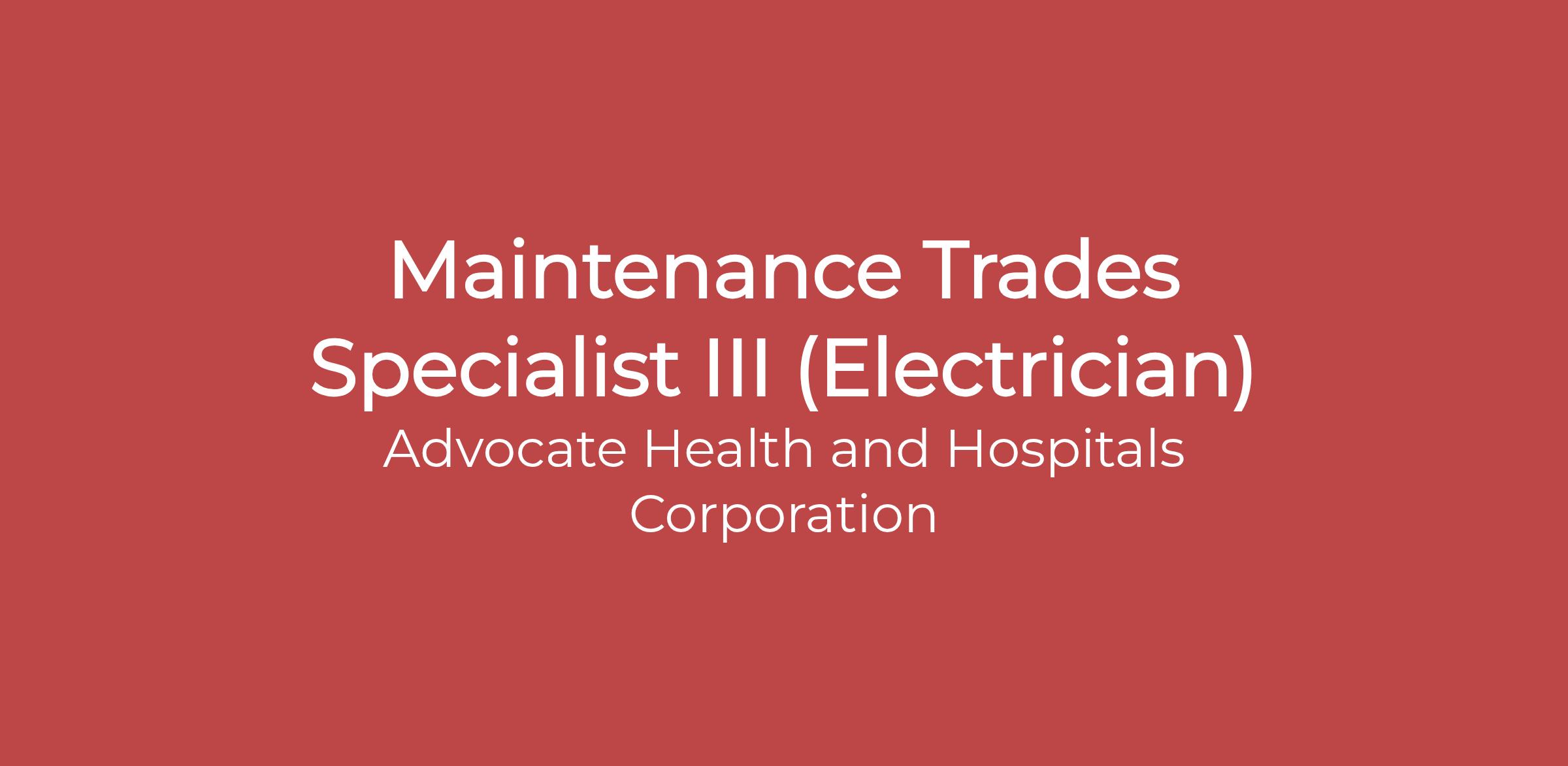 Position: Maintenance Trades Specialist III