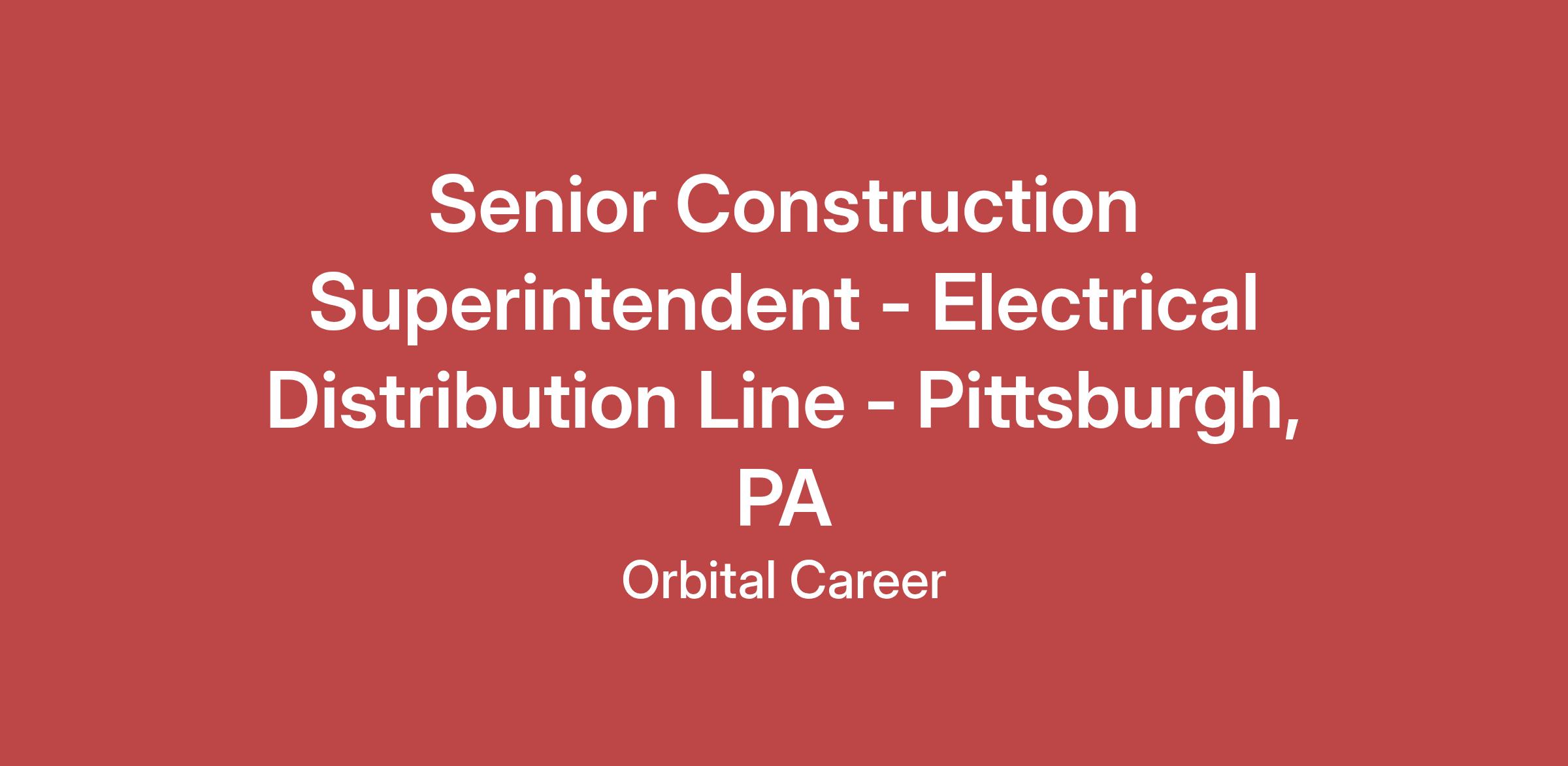 Senior Construction Superintendent - Electrical Distribution Line - Pittsburgh, PA