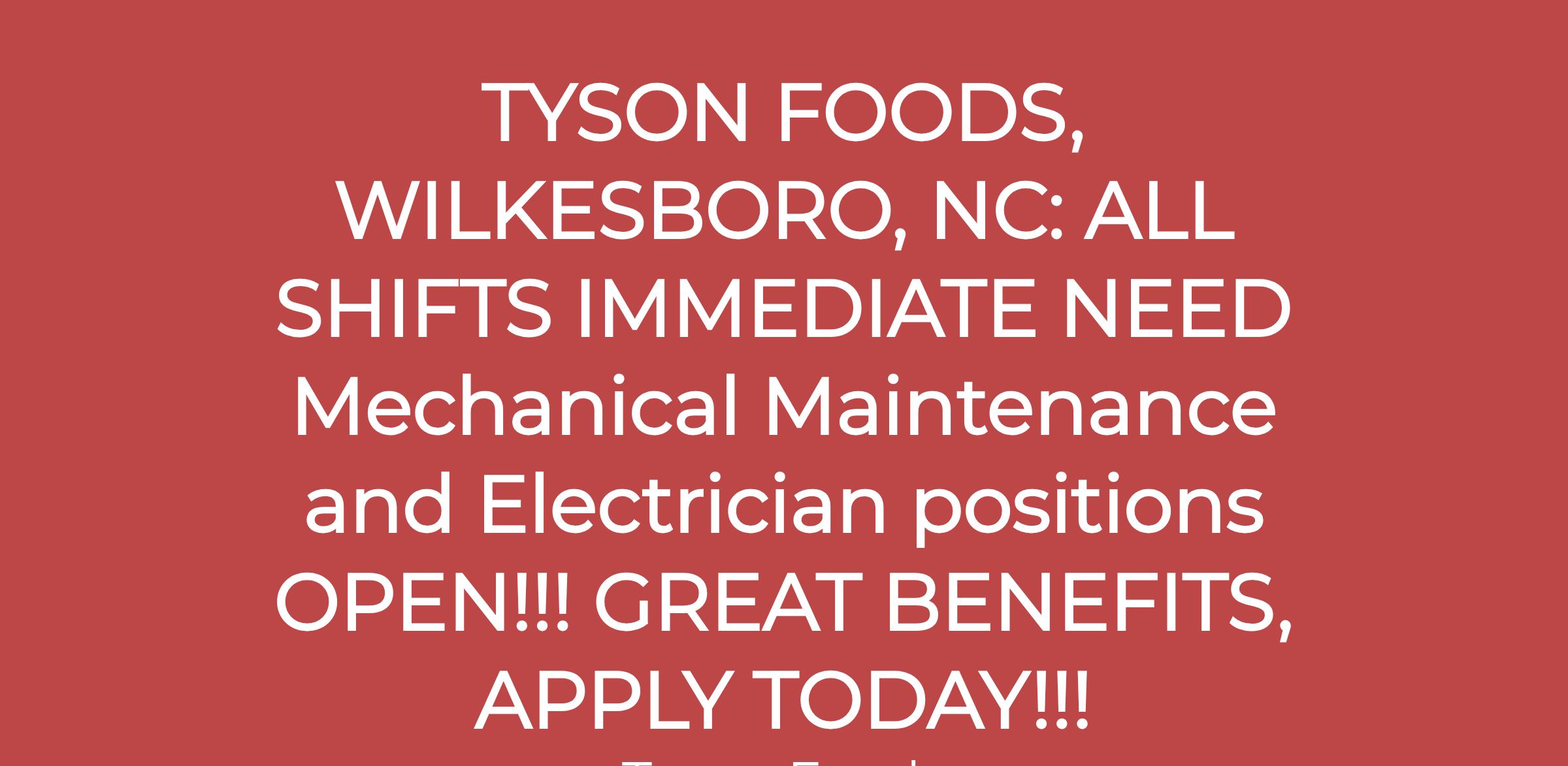 *CANDIDATES THAT HAVE WORKED FOR TYSON FOODS OR TYSON AFFILIATES 3 OR MORE TIMES WILL NOT BE ELIGIBLE FOR REHIRE.