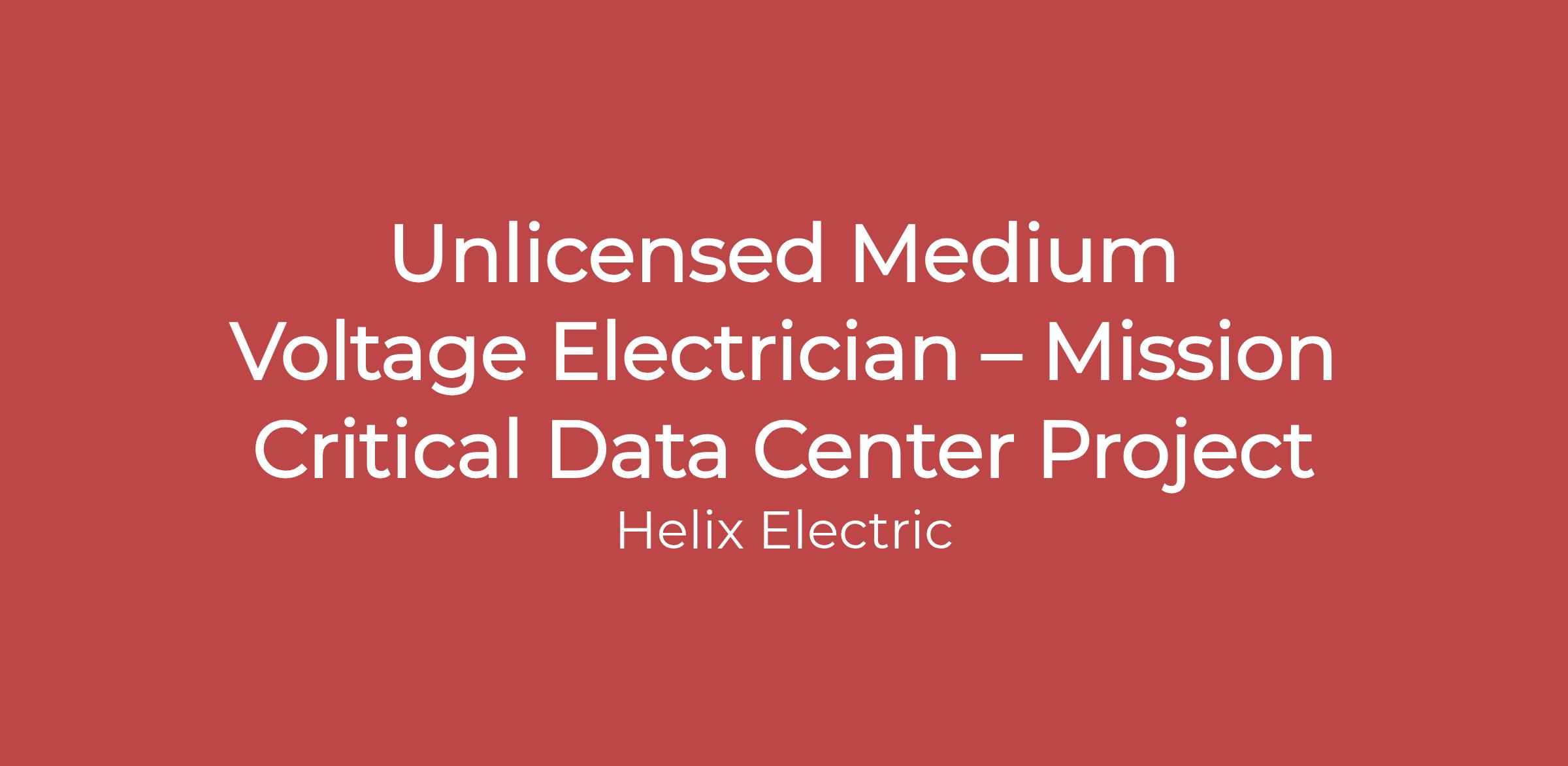 Helix Electric is hiring experienced Medium Voltage (MV) Electricians to support a largeâscale, missionâcritical data center project. This role focuses on installation, termination, testing, and commissioning of 5kV–35kV electrical systems across a highâavailability campus.