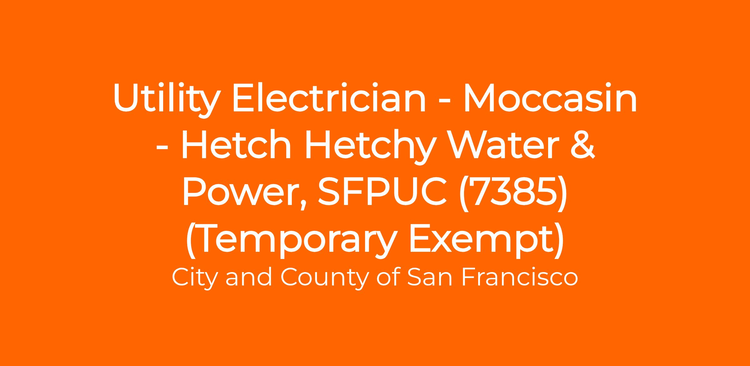Under general supervision, performs inspection, maintenance, repair, installation, and testing of a variety of electrical systems and equipment, up to 600 Volts energized and 601 Volts to 301,000 Volts de-energized, used at the water, wastewater, power, and hydroelectrical facilities of the San Francisco Public Utilities Commission.