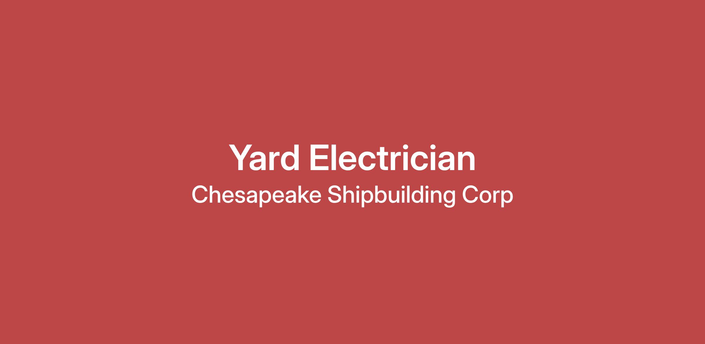 MAJOR RESPONSIBILITIES: The Yard Electrician is responsible for installing, maintaining, troubleshooting, and repairing electrical systems throughout the shipyard.